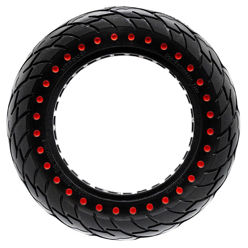 Ultraleté plné pneu Nedong 10×2,125-6.1/B34 je spolehlivou náhradou pro vaši elektrokoloběžku. Díky své minimální hmotnosti přispívá k nižší spotřebě energie a lepší jízdnímu komfortu. Pneu je kompatibilní s populárními modely značky Xiaomi (M365, Essential, 1S, Pro, Mi 3) a řadou koloběžek Cecotec (Outsider E-Volution 8,5 Phoenix, Bongo Serie A a jej vylepšené varianty). Výrazný černočervený design s červenými tečkami zajišťuje nejen estetický vzhled, ale také lepší viditelnost během jízdy.